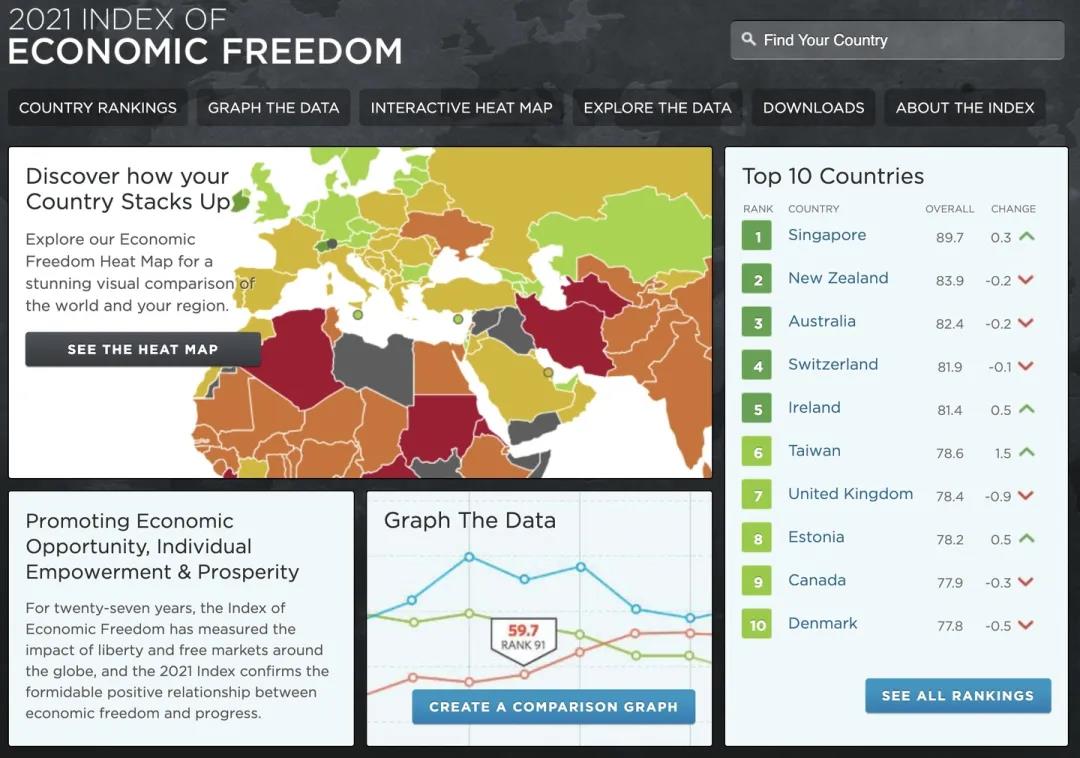 在今年全球權(quán)威的經(jīng)濟(jì)自由度評價指數(shù)中,《華爾街日報》和美國傳統(tǒng)基金會發(fā)布的2021年年度報告中,新加坡成為全球最自由的經(jīng)濟(jì)體。加拿大弗雷澤研究所最新公布的《世界經(jīng)濟(jì)自由度2020年度報告》中,新加坡排名第二。